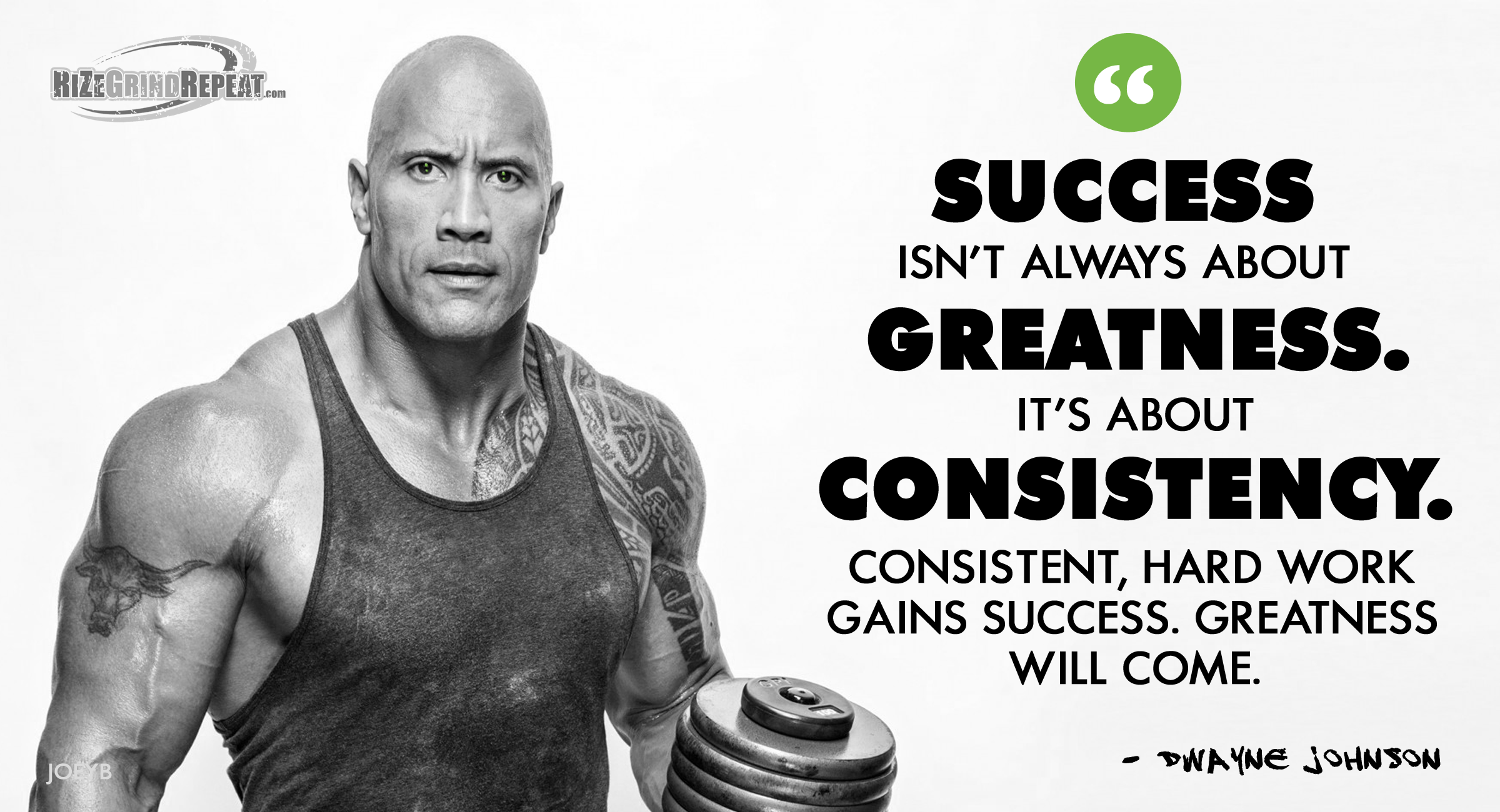Success isn’t always about greatness. It’s about consistency. Consistent, hard work gains success. Greatness will come. — Dwayne “The Rock” Johnson